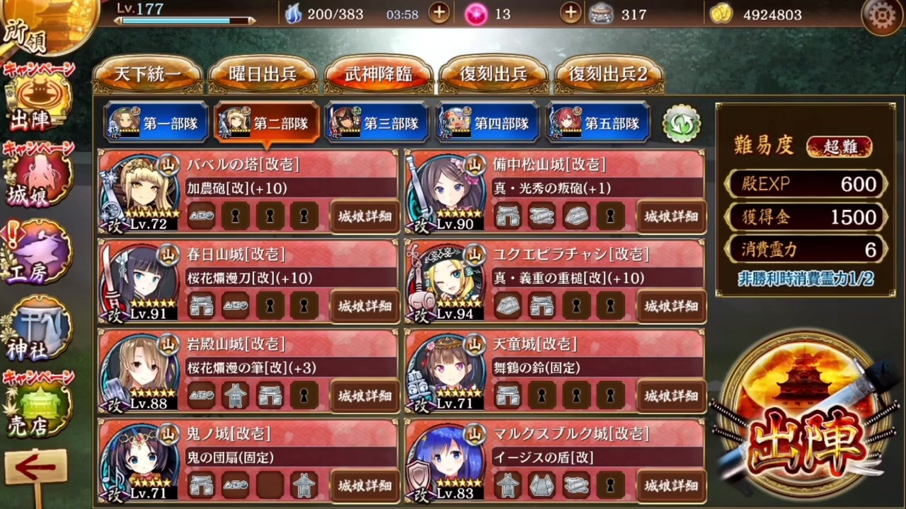 城プロre 凄まじい性能のバベルの塔 真 武神降臨 伊達政宗 片倉小十郎 超難 All戦功 Youtube